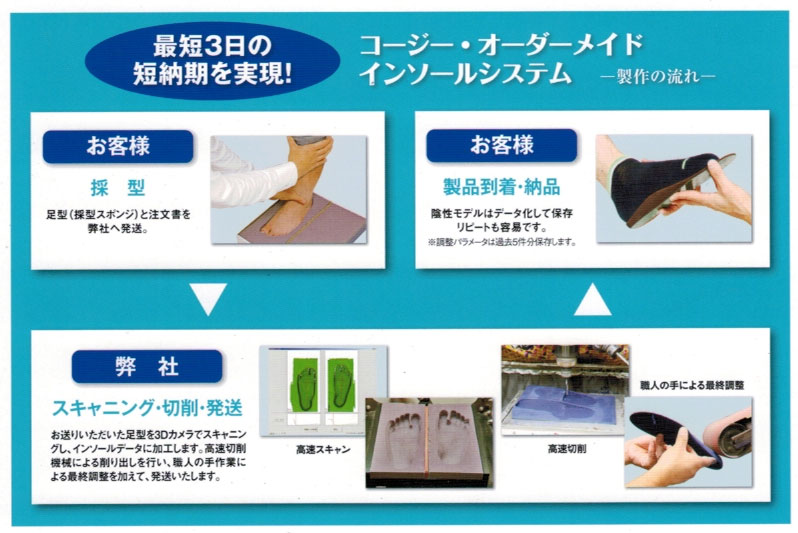 - スキャニングした足型データを弊社にて大切に保存。異なるパラメーターでのリピートにも対応いたします。